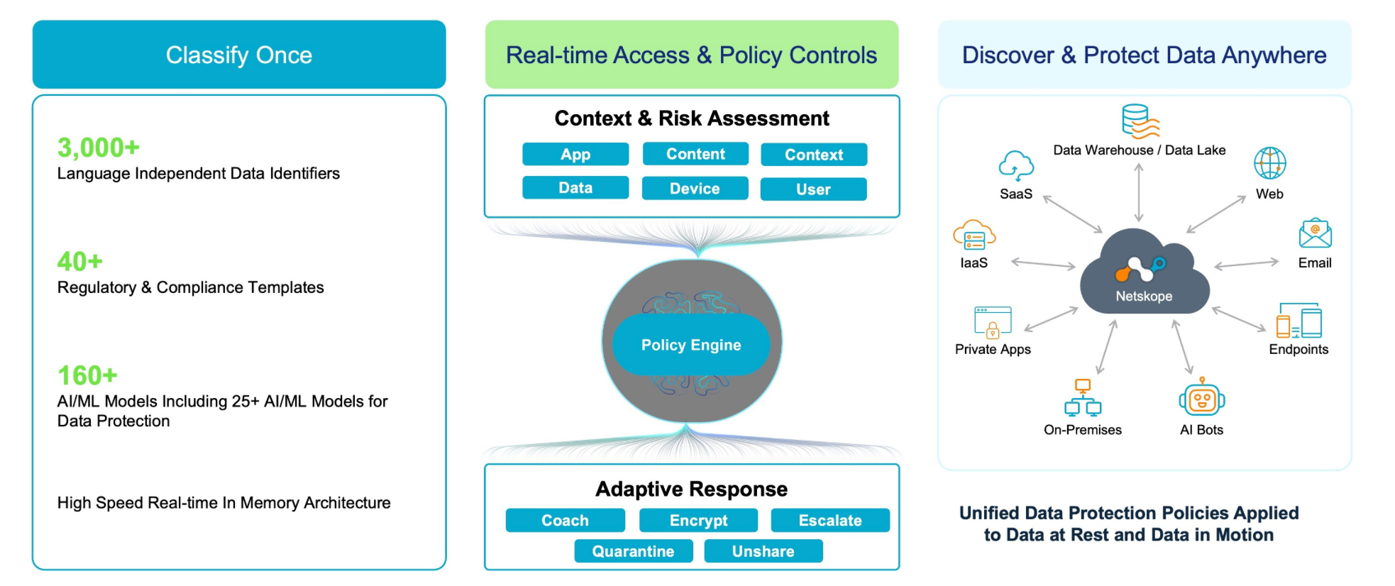 Netskope has long been leveraging ML and AI internally for threat detection. In mid-2023, they added a new AI layer dubbed Skope AI to further enhance their product suite with LLM and chatbot capabilities to improve the DLP data classification and threat detection with contextual awareness.