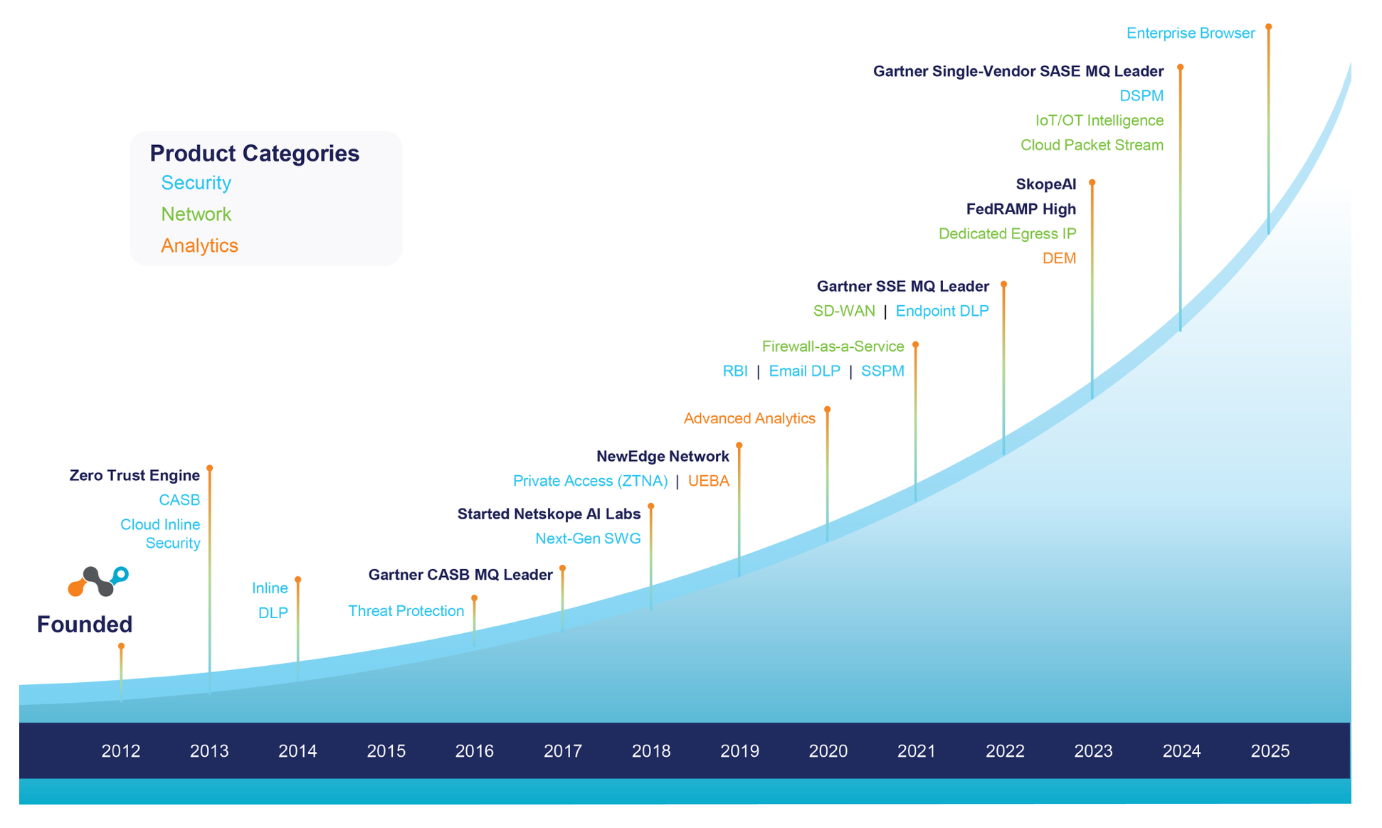 - Netskope has evolved from CASB to SSE to SASE over the past few years, and continues to be a top leader per industry reports.